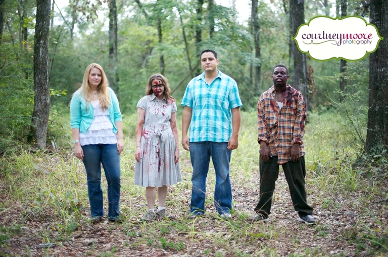 Katy and John’s engagement session was this past week and it was SO much fun! The weather cooperated with us for the most part- it was actually pretty eerie and foggy which was PERFECT because Katy planned to surprise John with a Zombie attack during their session!!! We (Katy and I) were both pretty nervous about it- I thought I was going to scream and freak out and run away or something. Thankfully I didn’t even though they did a GREAT job with make up and stuff- it was kinda gross! Anyway, their wedding will be next month at Huntsville State Park (no Zombies will be present, at least I don’t think they will be 😉 ) in the forest so it was only fitting that we did the engagements there too! Enjoy this fun sneak peek!